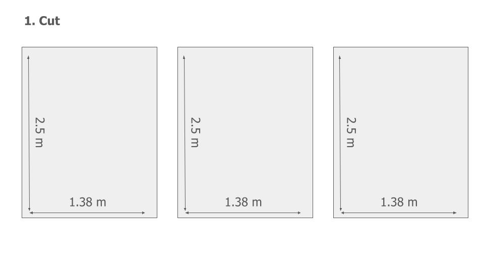 Using some online guides as a starting point, we decided on how to approach the canopy. The design called for several rectangular panels, each 2.5 meters long, collectively forming an approximately 4-meter diameter canopy that would be pleated to fit on to the canopy ring we had ordered. The number of panels depended on the fabric width. We also decided we wanted to attach some faux foliage to around the top of canopy to tie in with the theme for the rest of the nursery.